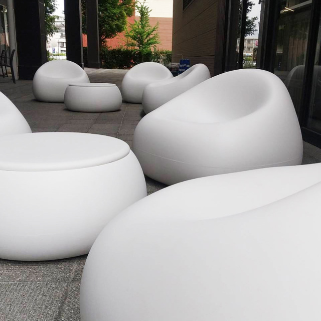 柔らかな曲線美が印象的になガムボール・ファミリーのひとつ。一人掛けの「ガムボール・アームチェア」。 安定性が良くゆったりとしたくつろぎの空間によく似合い、 公共の場や商業施設に最適です。 デザイン性が面白い・壊れにくい・水に強い・継ぎ目がない。 その近未来的な佇まいと共存する優れた実用性、そして安全性が光ります。