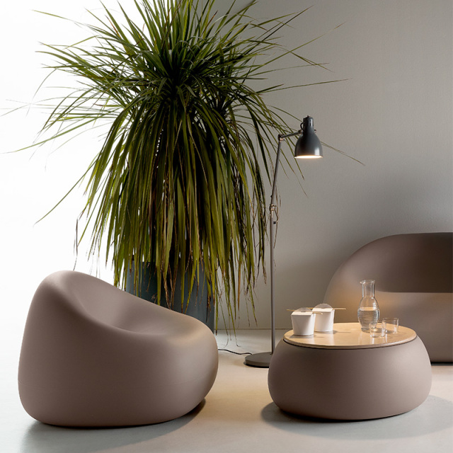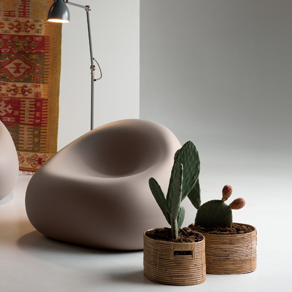 柔らかな曲線美が印象的なガムボールファミリー。一人掛けの「ガムボール・アームチェア」はすっぽり包み込まれるようなデザイン。