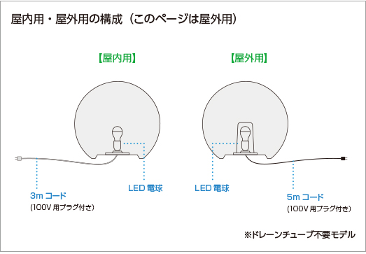 | 付属品 | 100V用プラグ付5mコード(VCT-FK 1.25) LED(電球40W相当)を標準装備。 寿命約40,000時間。取扱説明書、保証書 |