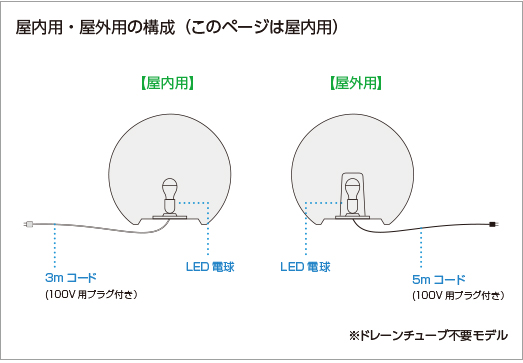 | 付属品 | 100V用プラグ付3mコード(VCT-FK 1.25) LED(電球40W相当)を標準装備。 寿命約40,000時間。取扱説明書、保証書 |