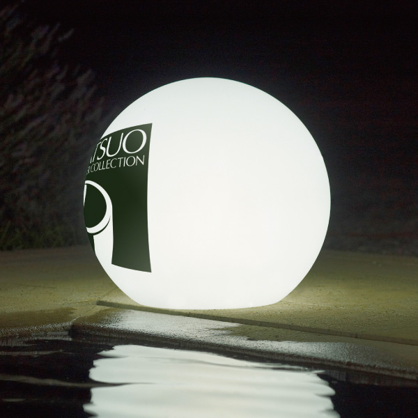 Φ45センチのボール型ライト・光るオブジェとして室内で使用可能。樹脂製だから軽くて丈夫。オプションで専用スタンドのご用意もあります。インテリアライト、店舗のサイン、照明や光の演出としてお使いいただけます。イタリア製