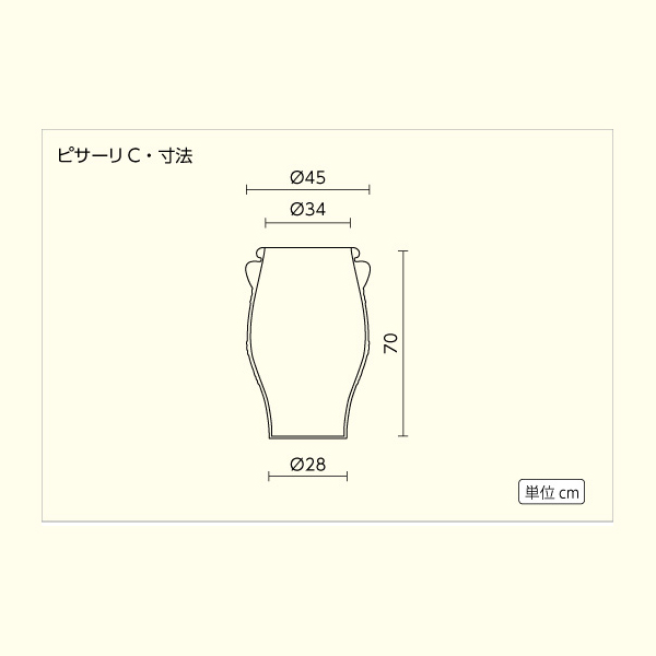 NEWS プランタープロショップのトップページ ギリシャ・クレタ島・テラコッタ テラコッタ素焼鉢 ~50cm つぼ型タイプ 10号鉢用カバー クーポン対象商品 ▼配送会社の規定上、日曜・祝日のお届けはできません。 ★大型商品につき送料別途★【ギリシャ・クレタ島】ピサーリC/Φ45×H70/テラコッタ/素焼き鉢/陶器/10号/日祝配送不可 定価: ¥96,800(税込) 価格: ¥77,660 (税込) [ポイント還元 776ポイント~] 販売期間: ■送料について(大型): 大型商品につき送料がかかります。お届け地域によって送料が変わるため計算して担当者より連絡します。 選択してください 確認しました 数量: 個 在庫: 在庫あり 在庫 在庫あり 返品についての詳細はこちら 5.0 (1件) サイズ A 45 / B 34 / H 70 / D 28 cm 材質 テラコッタ ギリシャ・クレタ島製 重量 24.0 kg 水抜き穴(底穴) あり 伝統製法によるハンドメイドのため、小キズや焼きギレ、サイズ誤差、または模様に個体差が生じることがあります。 また、窯の火の当たり具合で色味が異なる事があります。これらはギリシャ・クレタ島シリーズの特性であり、不良品ではございません。 商品レビュー&お客様の声 atsushi様 投稿日:2021年04月13日 おすすめ度: 素早い配送で商品も想像通りのものでした、 またお願いします