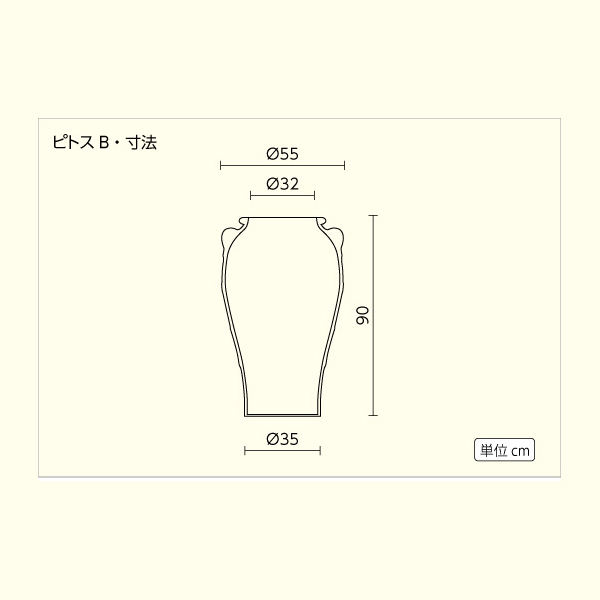 プランタープロショップのトップページ ギリシャ・クレタ島・テラコッタ テラコッタ素焼鉢 ~60cm つぼ型タイプ 10号鉢用カバー クーポン対象商品 ★送料別途計算★【ギリシャ・クレタ島】ピトスB/Φ55×H90/テラコッタ/素焼き鉢/陶器/10号 定価: ¥116,600(税込) 価格: ¥93,500 (税込) [ポイント還元 935ポイント~] 販売期間: ■送料について(大型): 大型商品につき送料がかかります。お届け地域によって送料が変わるため計算して担当者より連絡します。 選択してください 確認しました ■配送について: 日曜祝日配達不可。重量物・特別梱包につき、配達日の事前打ち合わせが必須、後ほどお電話します。 選択してください 確認しました 数量: 個 在庫: 在庫あり 在庫 在庫あり 返品についての詳細はこちら レビューはありません サイズ A 55 / B 32 / H 90 / D 35 cm 材質 テラコッタ ギリシャ・クレタ島製 重量 38.0 kg 水抜き穴(底穴) あり 伝統製法によるハンドメイドのため、小キズや焼きギレ、サイズ誤差、または模様に個体差が生じることがあります。 また、窯の火の当たり具合で色味が異なる事があります。これらはギリシャ・クレタ島シリーズの特性であり、不良品ではございません。