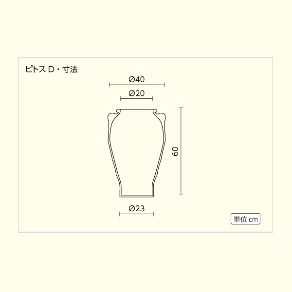 NEWS プランタープロショップのトップページ ギリシャ・クレタ島・テラコッタ テラコッタ素焼鉢 ~40cm つぼ型タイプ 茶系 ▼配送会社の規定上、日曜・祝日のお届けはできません。 ☆送料無料☆【ギリシャ・クレタ島】ピトスD/Φ40×H60/テラコッタ/素焼き鉢/日祝配送不可 定価: ¥78,100(税込) 価格: ¥65,956 (税込) [ポイントアップ中 1,319ポイント~] 販売期間: 数量: 個 在庫: 在庫あり 在庫 在庫あり 返品についての詳細はこちら レビューはありません サイズ A 40 / B 20 / H 60 / D 23 cm 材質 テラコッタ ギリシャ・クレタ島製 重量 18.0 kg 水抜き穴(底穴) あり 伝統製法によるハンドメイドのため、小キズや焼きギレ、サイズ誤差、または模様に個体差が生じることがあります。 また、窯の火の当たり具合で色味が異なる事があります。これらはギリシャ・クレタ島シリーズの特性であり、不良品ではございません。