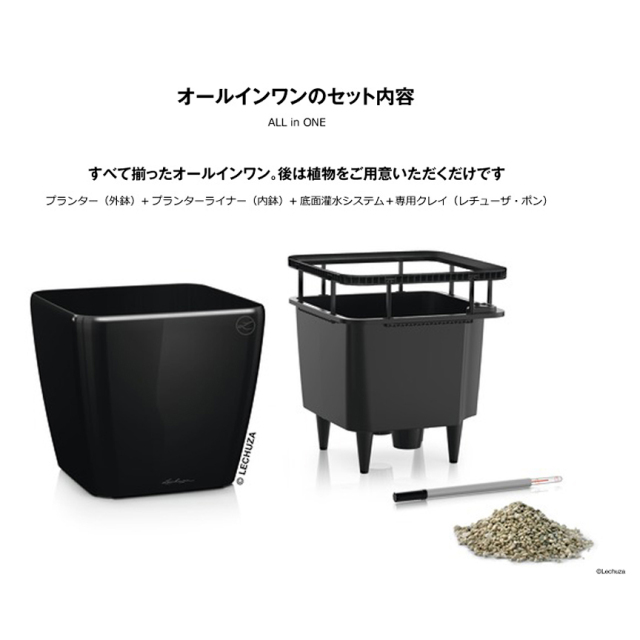 プランターがどれだけスタイリッシュでも、鉢受けがあるとイメージが変わってしまいませんか?その点、レチューザは水のリザーバーがあるため、鉢の外に水が漏れることがなく、鉢受けがいりません。