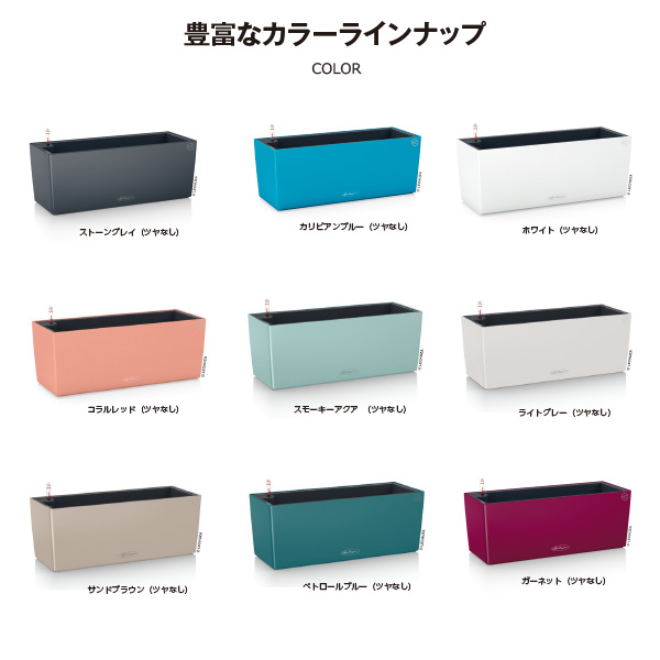 ハンギングプランターとして大人気のレチューザ・バルコネラシリーズですが、カラーがここまで豊富に揃っているのは、この「バルコネラカラー」のみ。