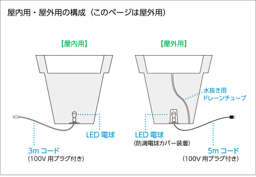 | 付属品 | 100V用プラグ付5mコード(VCT-FK 1.25) LED(電球60W相当)を標準装備。 寿命約40,000時間。取扱説明書、保証書 |