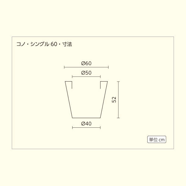 NEWS プランタープロショップのトップページ ボンドム ポリエチレン樹脂製(レチューザ除く) ~60cm ラウンドタイプ モダンデザイン デザインプランター クーポン対象商品 プロユースビッグサイズプランター ☆送料無料☆【ボンドム】コノ・シングル 60【CONO】・プラスチック・樹脂製・モダンなシンプルデザイン 定価: ¥68,200(税込) 価格: ¥60,335 (税込) [ポイント還元 603ポイント~] 販売期間: 水抜き穴は開けますか?: 直植えされる場合は水抜き穴が必要です。鉢カバーでご使用の場合は必要ありません。 鉢として水抜きがしやすい1番いい格好で底穴を開けています。穴のサイズや数は鉢の大きさや底の形状によって違います。 ★ご希望がある方や詳しく知りたい方はご相談ください★ 選択してください 穴開け希望(¥0) 穴は必要なし(¥0) 数量: 個 カラー在庫購入ダークグレー(マットカラー)在庫あり ラスティ(マットカラー)在庫あり ホワイト(マットカラー)在庫あり カラー在庫購入ダークグレー(マットカラー)在庫あり ラスティ(マットカラー)在庫あり ホワイト(マットカラー)在庫あり 返品についての詳細はこちら レビューはありません サイズ Φ 60 / H 52 cm 材質 ポリエチレン 重量 4.4 kg 水抜き穴(底穴) なし※ご希望のお客様には無料で穴あけ加工して出荷します。
