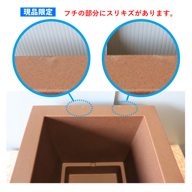 独特な鉄さびのような奥行のありこげ茶カラーとフチの厚みが高級感のあるプランターです。