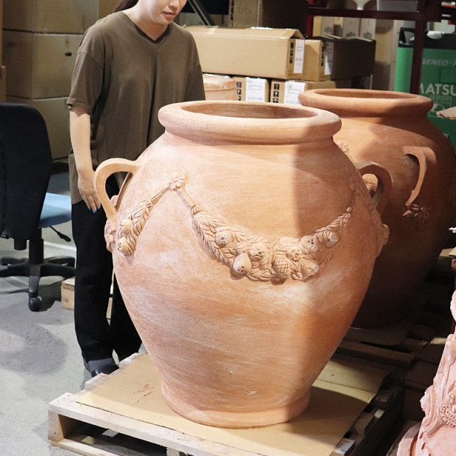 NEWS プランタープロショップのトップページ イタリアンテラコッタ テラコッタ素焼鉢 ~90cm つぼ型タイプ 12号鉢用カバー クーポン対象商品 ※重量物につき、荷受けの際の確認事項がございます。ご注文後、当店の担当者よりお電話いたしますので、必ずご連絡のとれる電話番号を入力してください。電話をする時間帯等にご希望がある場合は、備考に入力をお願いします。 ★送料別途計算★【トスカーナ】壺90/Φ82×H90/テラコッタ/素焼き鉢 定価: ¥324,500(税込) 価格: ¥259,820 (税込) [ポイント還元 2,598ポイント~] 販売期間: ■送料について(大型): 大型商品につき送料がかかります。お届け地域によって送料が変わるため計算して担当者より連絡します。 選択してください 確認しました ■配送について: 日曜祝日配達不可。重量物・特別梱包につき、配達日の事前打ち合わせが必須、後ほどお電話します。 選択してください 確認しました 数量: 個 在庫: 残りわずか 在庫 残りわずか 返品についての詳細はこちら レビューはありません サイズ A 82 / B 42 / H 90 / D 45 cm 材質 テラコッタ イタリア製 重量 87.0 kg 水抜き穴(底穴) あり ※トスカーナシリーズはハンドメイド品であるため、同じモデルでも、サイズや模様などに多少の個体差が見られる場合があります。 また、サイズ表記は概寸です。予めご了承ください。